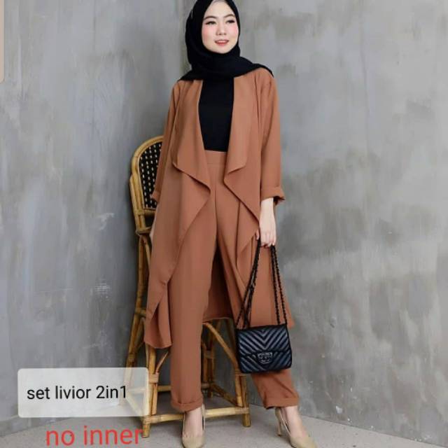 Muslim Terbaru Celana Setelan Wanita Kekinian 61164 Stelan E Mt345 Elan Blazer 2in1 Donita Shopee Indonesia