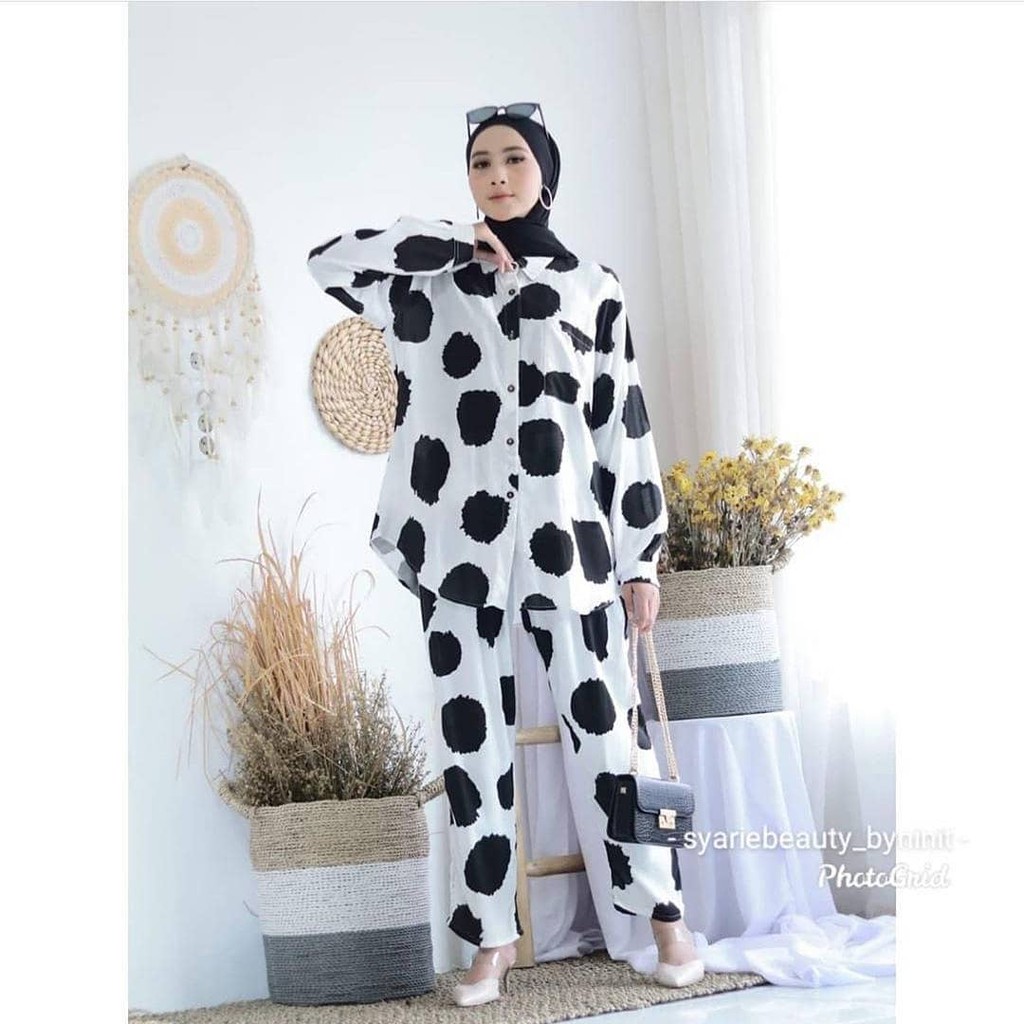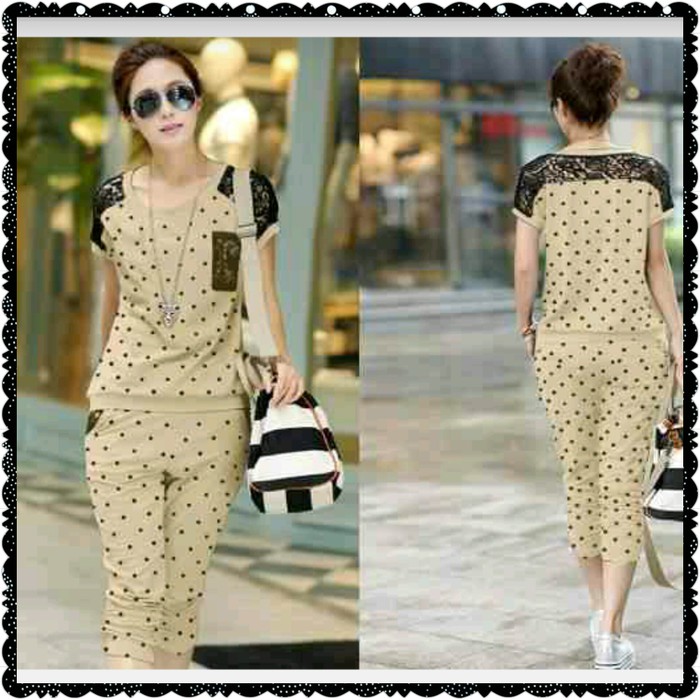 S42p7 Setelan Murah Import Stelan Baju Wanita Kekinian Hits Setelan Polkadot Coksu Shopee Indonesia