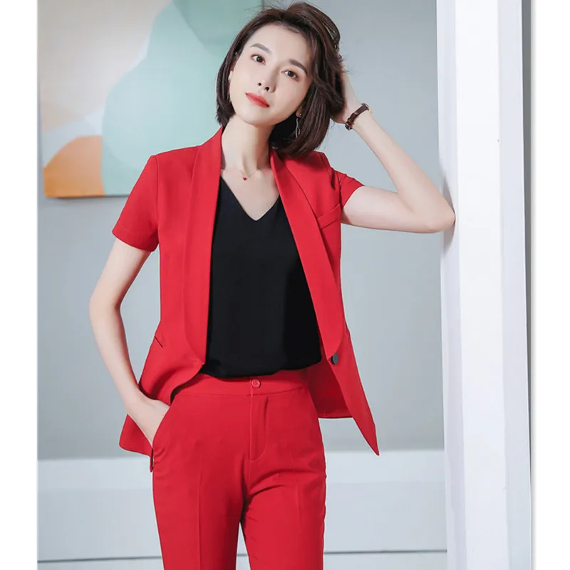 Musim Panas Wanita Kantor Elegan Celana Setelan Lengan Pendek Celana Panjang Jaket Wanita Profesional Ukuran Dua Sepotong Cocok Untuk Wanita Celana Sesuai Dengan Aliexpress