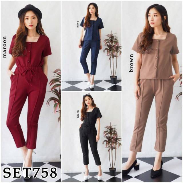 Jual Jumpsuit Kantor Pakaian Kerja Wanita Modern Set Celana Panjang Setelan Baju Atasan Kuliah Lengan Pendek Pakaian Abg Remaja Promo Di Lapak Toko Jane Bukalapak