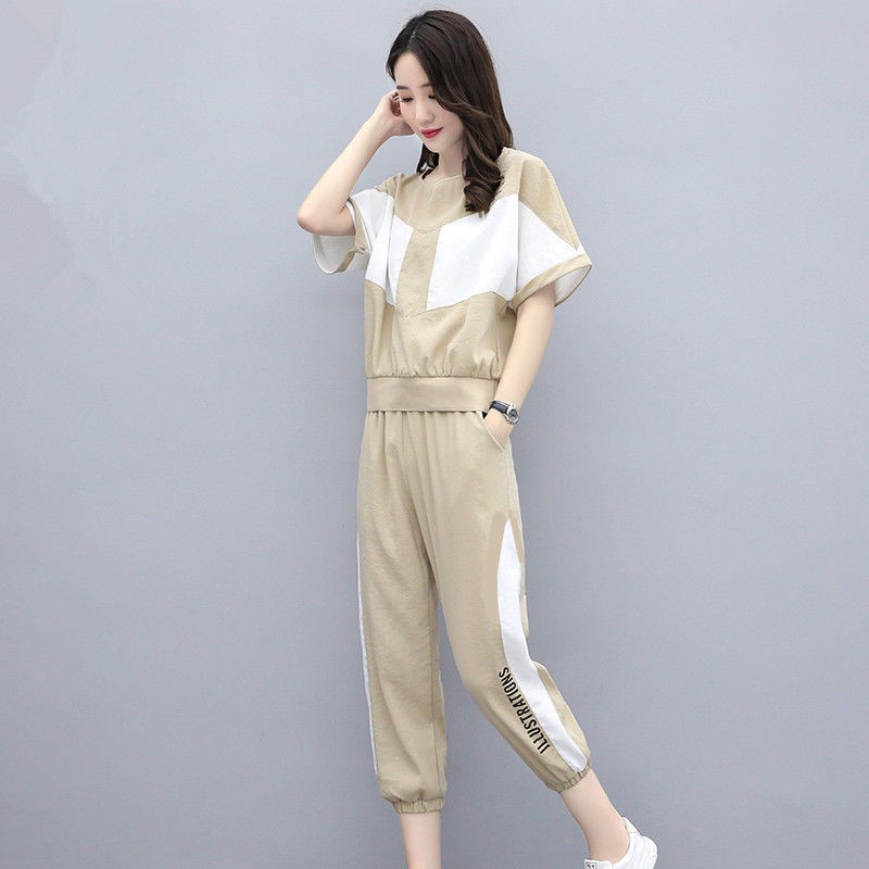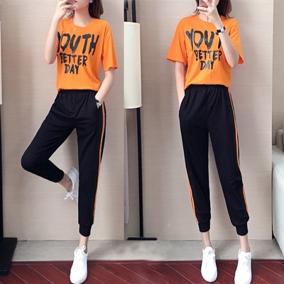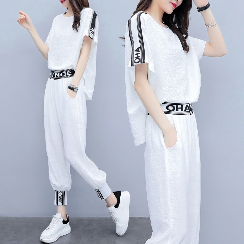2 Pcs Set Wanita Kaos Lengan Pendek Celana Panjang Korea Fashion Kasual Sport Setelan Shopee Indonesia