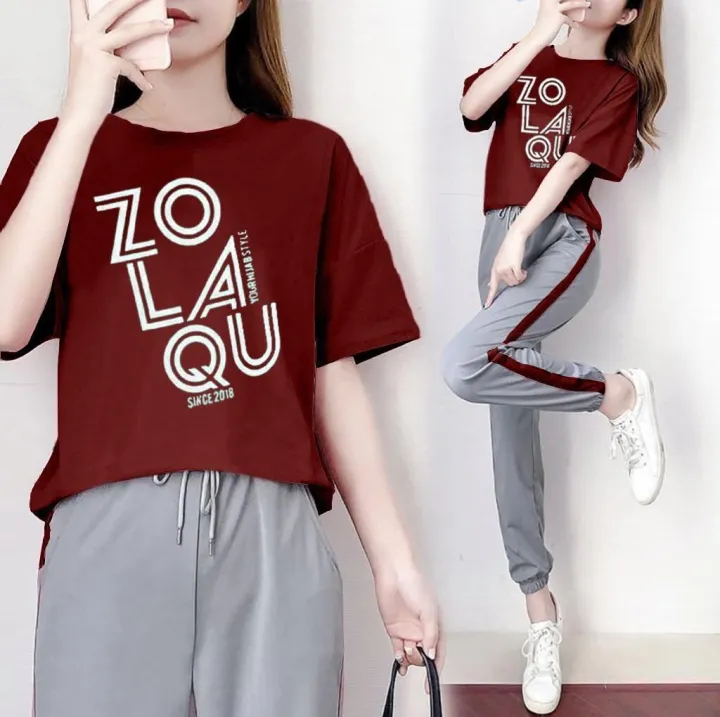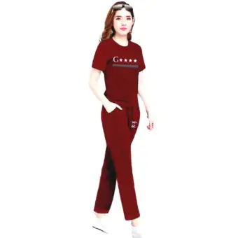Setelan Kaos T Shirt Lengan Pendek Celana Panjang Santai Untuk Wanita Shopee Indonesia