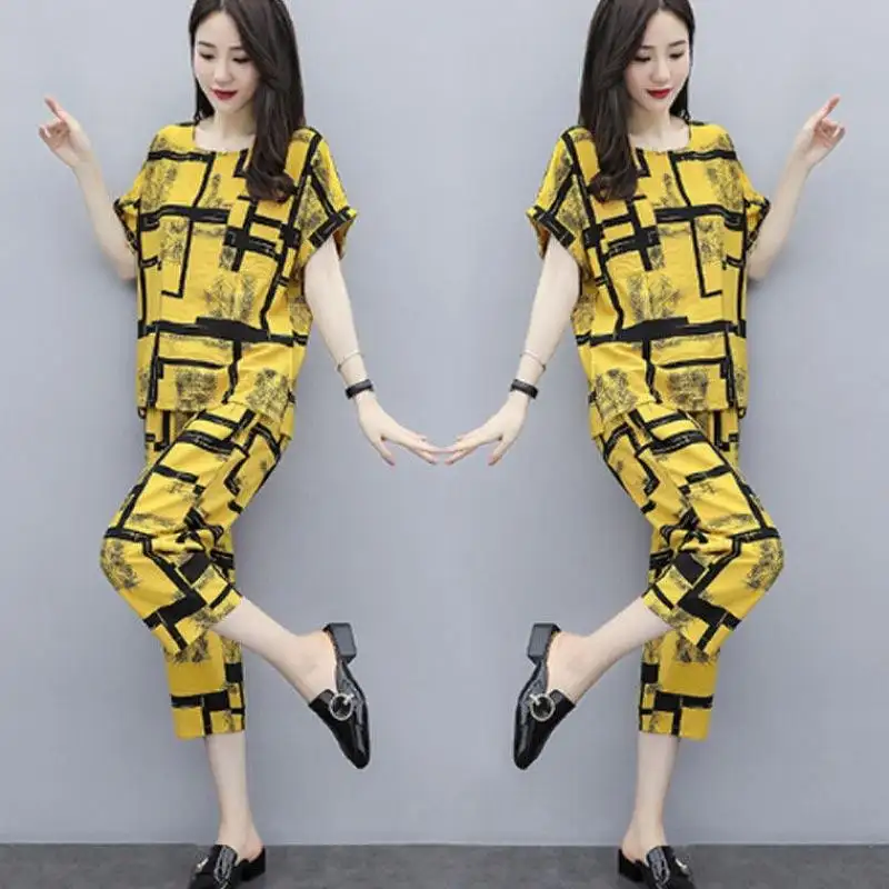 Setelan Wanita Print Kaos Lengan Pendek Celana Panjang Korea Longgar Kasual Fashion Set Shopee Indonesia
