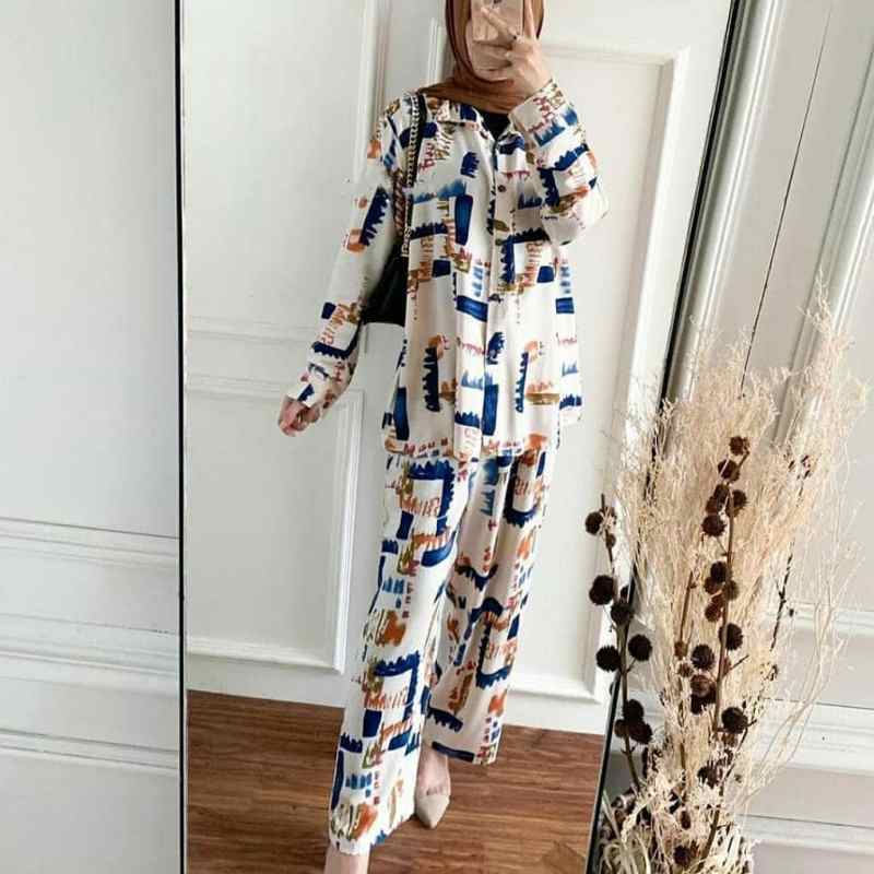 Baju Setelan Wanita Terbaru 2020 Viscose Kemeja Set Sanisa Collection