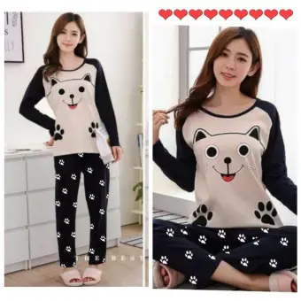 Murah Baju Tidur Cewek Wanita Piyama Pajamas Katun Motif Black Cat Murah Shopee Indonesia