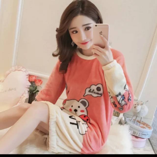 Impor Musim Gugur Bulu Karang Baju Tidur Wanita Musim Dingin Piyama Tebal Korea Putri Manis Lucu Mus Shopee Indonesia