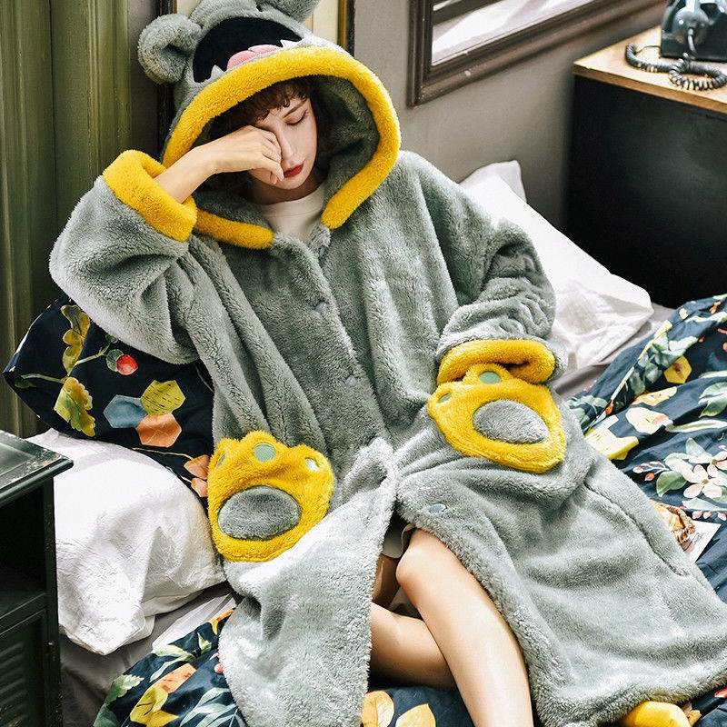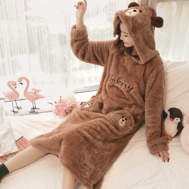 Baju Tidur Perempuan Baju Tidur Wanita Coral Velvet Pajamas Women S Autumn And Winter Plus Velvet Cartoon Korean Long Sleeved Sweet And Cute Female Flannel Home Service Suit Shopee Singapore