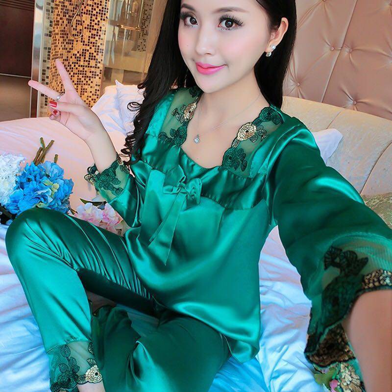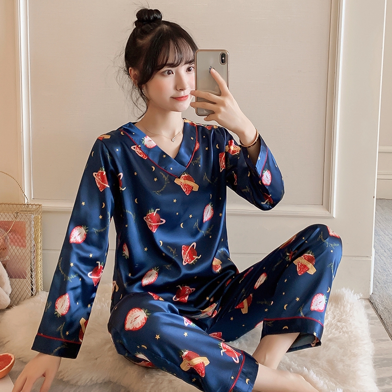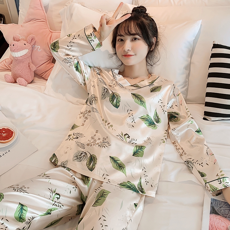 Baju Tidur Wanita Baju Tidur Perempuan Pajamas Women S Summer Long Sleeved Trousers Two Piece Suit Imitation Silk Sexy Korean Ladies Loose Plus Size Spring And Autumn Home Service Shopee Singapore