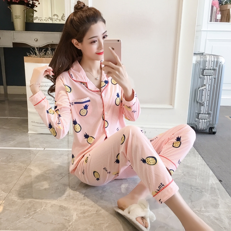 Pyjamas Baju Tidur Piyama Wanita Musim Semi Dan Musim Gugur Lengan Panjang Wanita Piyama Wanita Musim Panas Versi Korea Pakaian Luar Yang Comel Plus Ukuran Pakaian Wanita Shopee Singapore