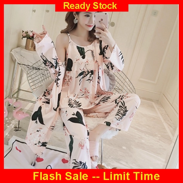Ready Stock Piyama Pakaian Tidur Wanita 3 In 1 Pakaian Tidur Gaya Korea Musim Gugur Shopee Indonesia