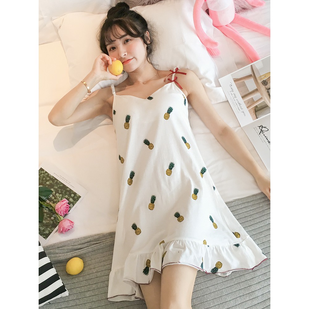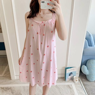 Baju Tidur Pyjamas Baju Perempuan Nuodun Sling Baju Tidur Wanita Piyama Kapas Musim Panas Seksi Korea Kasual Manis Plus Ukuran Pakaian Rumah Yang Longgar Shopee Singapore