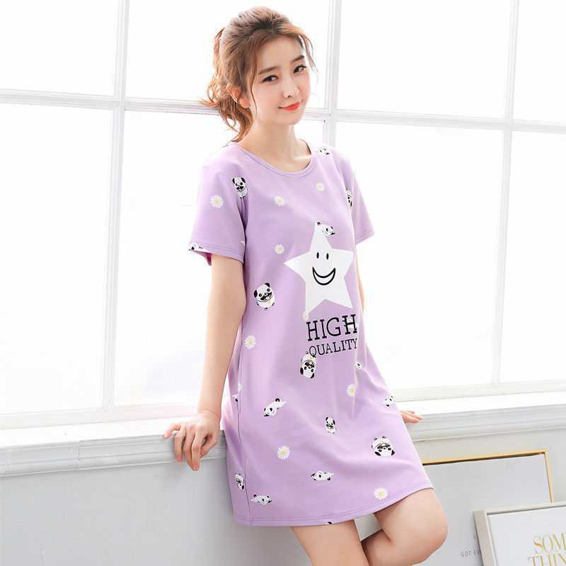 Baju Tidur Perempuan New Fashion Baju Tidur Wanita Night Skirt Women Summer Short Sleeved Ladies Cotton Pajamas Korean Summer Loose Over The Knee Plus Size Pregnant Women Can Wear Home Clothes Shopee