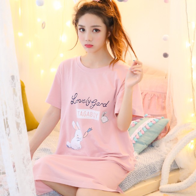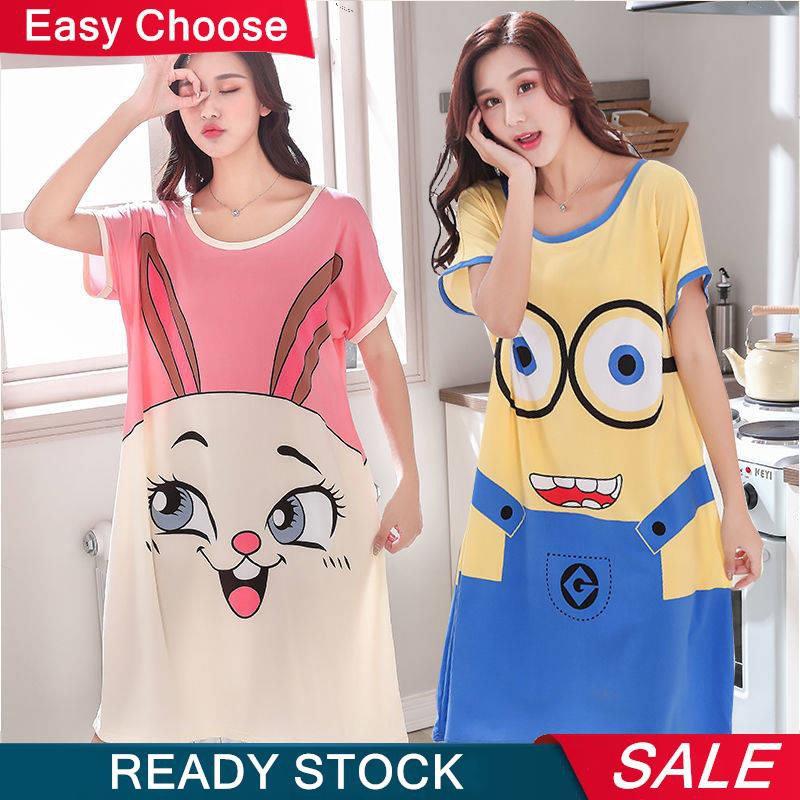 Baju Tidur Wanita Baju Tidur Perempuan Large Size Pajamas Women Summer Thin Section Korean Version Loose Cute Student Cartoon Nightdress Ladies Summer Short Sleeved Home Service Shopee Singapore