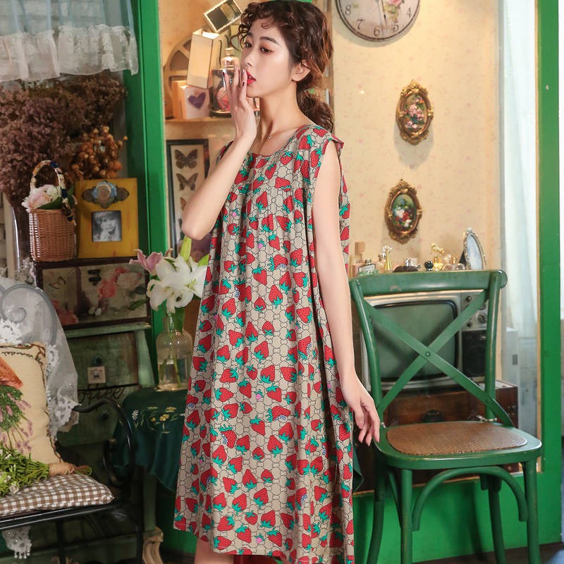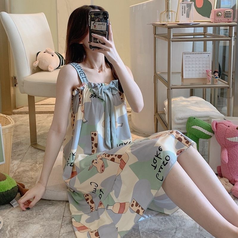 Baju Tidur Perempuan New Fashion Baju Tidur Wanita Summer Korean Cotton Silk Nightdress Ladies Summer Sleeveless Long Skirt Plus Size Pajamas Summer Artificial Cotton Thick Home Service Shopee Singapore