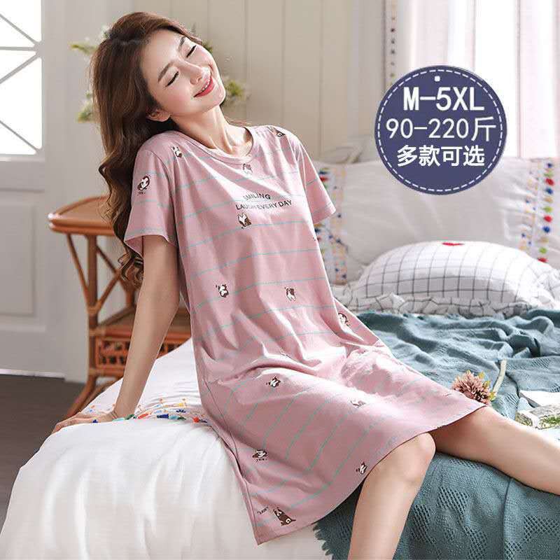 New Fashion Baju Tidur Wanita Baju Tidur Perempuan Night Skirt Ladies Summer Korean Version 200jin Plus Size Short Sleeved Pajamas Comfortable And Loose Cute Cartoon Student Home Service Shopee Singapore