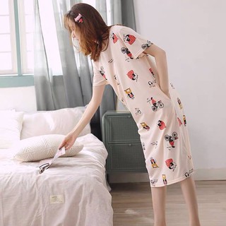 Wanita Versi Korea Dari Baju Tidur Katun Piyama Lengan Pendek Kartun Rok Panjang Longgar Shopee Indonesia