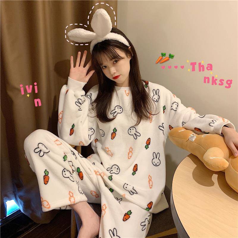 Piyama Set Wanita Mewah Seksi Hangat Musim Dingin Musim Gugur Tebal Piyama Flanel Rumah Musim Semi Kartun Siswa Baju Tidur 2 Piece Set Ukuran Besar Piyama Set Warecart