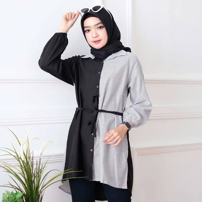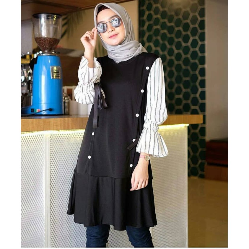 Baju Atasan Tunik Wanita Muslim Audi Busui Friendly Matt Balotelli Mix Djenar Tunik Muslimah Calm Shopee Indonesia