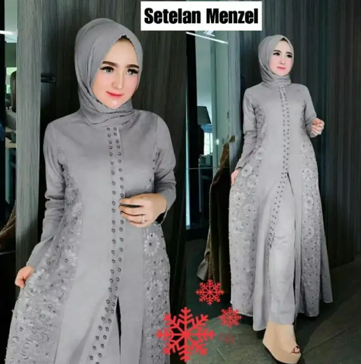 Fya Shope Stelan Baju Tunik Celana Wanita Muslimah Gamis Brukat Mewah Long Tunik Fashionable Celana
