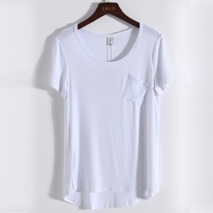 Kaos T Shirt Wanita Lengan Pendek Model Round Neck Longgar Warna Putih Polos Untuk Musim Panas Shopee Indonesia