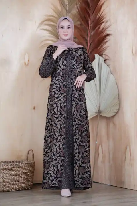 Sukaini Batik Gamis Batik Cardigan Plus Daleman Hitamnya Gamis Busui Batik Sukaini Daster Sukaini Batik Terlaris