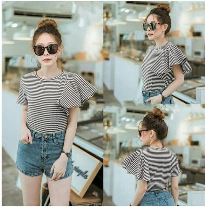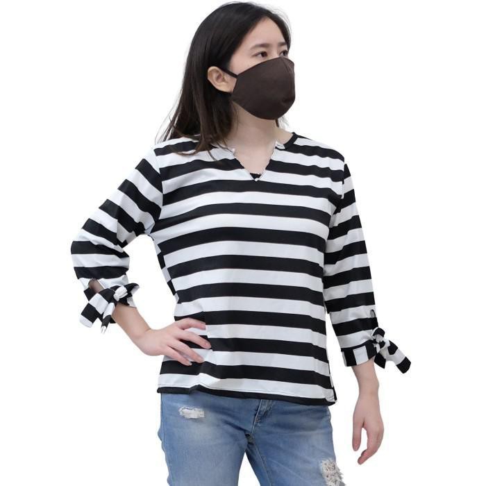 Kemeja Wanita Murah Casual Korea Blouse Korean Style Blouse Stripe Viola Hitam 95ams Shopee Indonesia
