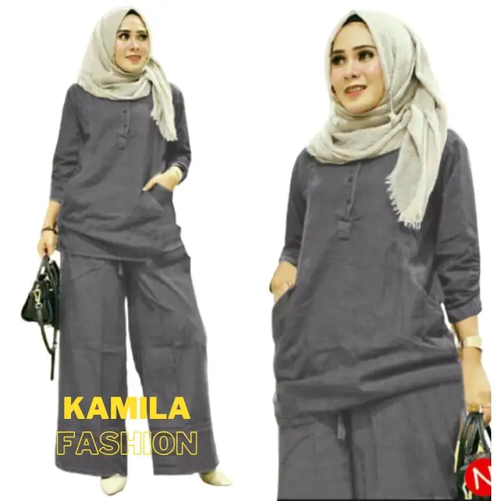 Baju Fashion Muslim Elin Kulot Set Bahan Wollycrepe Mix Kulot Linen Setelan Baju Dan Celana Wanita Ootd Hijab Setelan Kulot Wanita Terbaru Setelan Wanita Muslim Lazada Indonesia