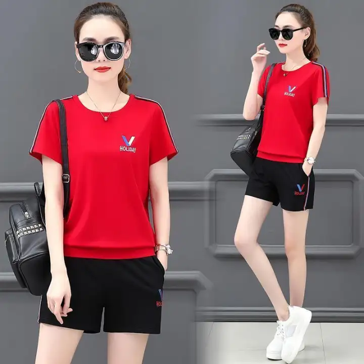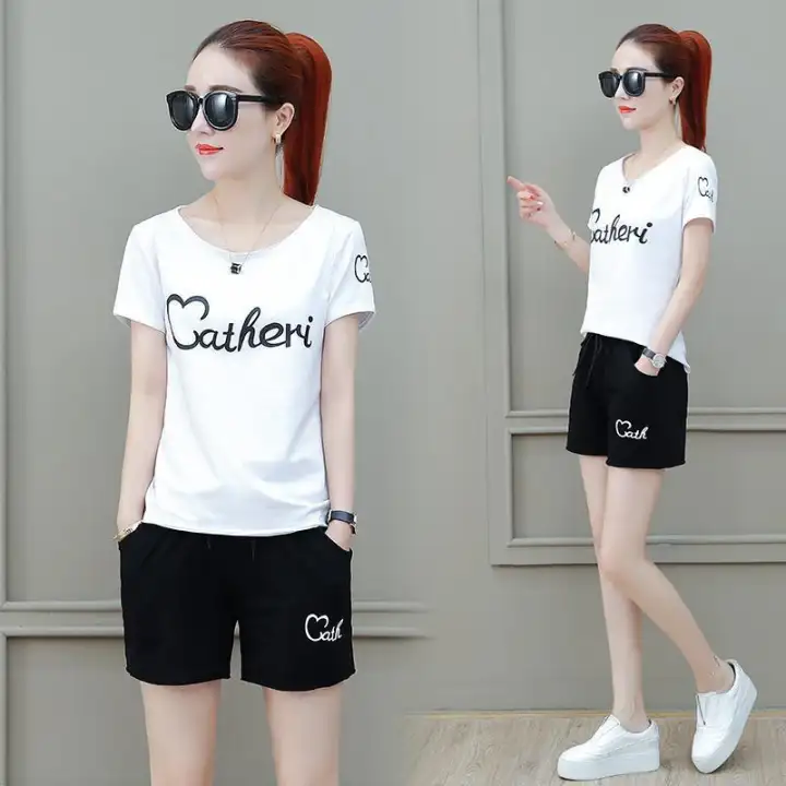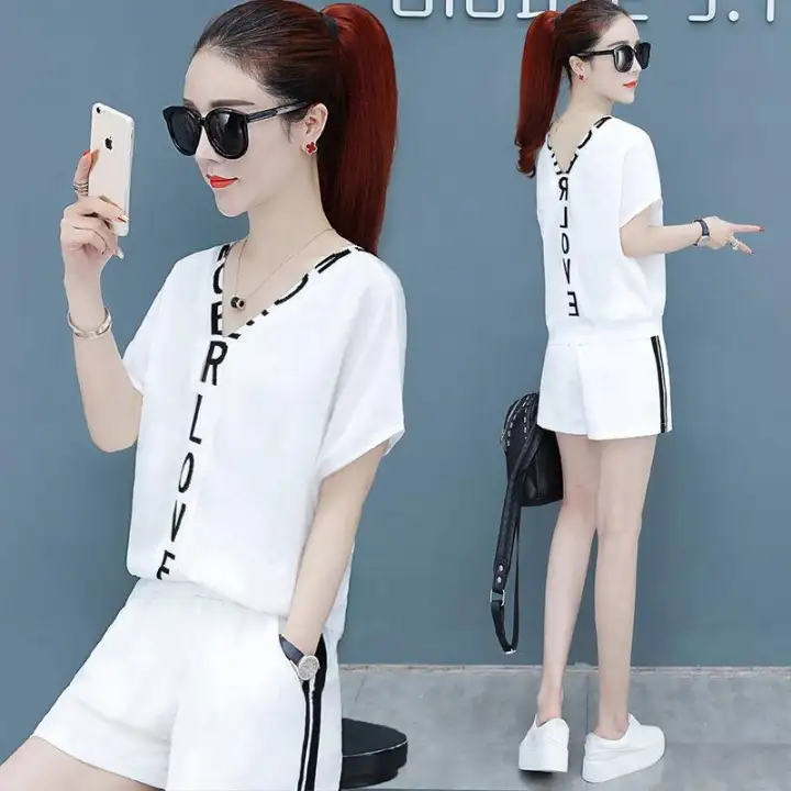 Pakaian Olahraga Kasual Wanita Baju Olahraga Celana Kasual Versi Korea Longgar Lengan Pendek Celana Musim Panas 2019 Lazada Indonesia