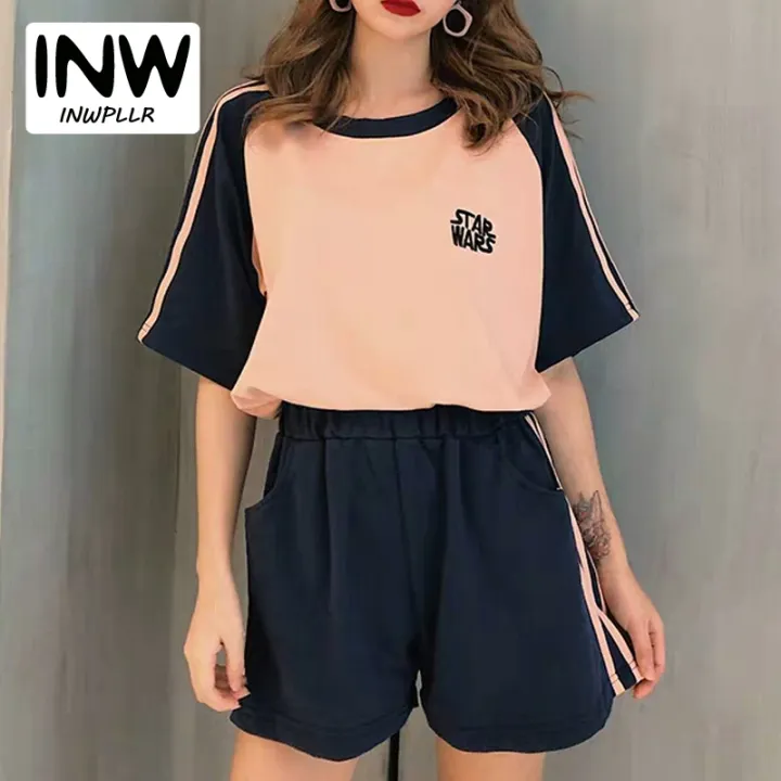 Setelan Kaos T Shirt Lengan Pendek Celana Pendek Wanita Casual Gaya Korea Untuk Olahraga Shopee Indonesia