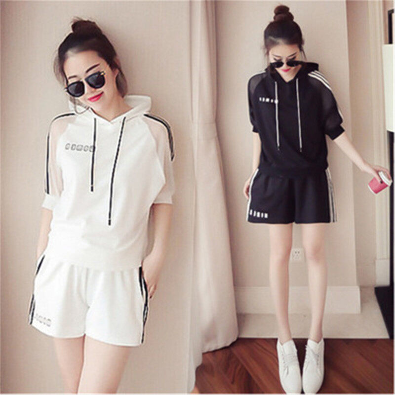 Setelan Olahraga Wanita Kaos T Shirt Hoodie Lengan Pendek Celana Gaya Korea Untuk Musim Panas Shopee Indonesia