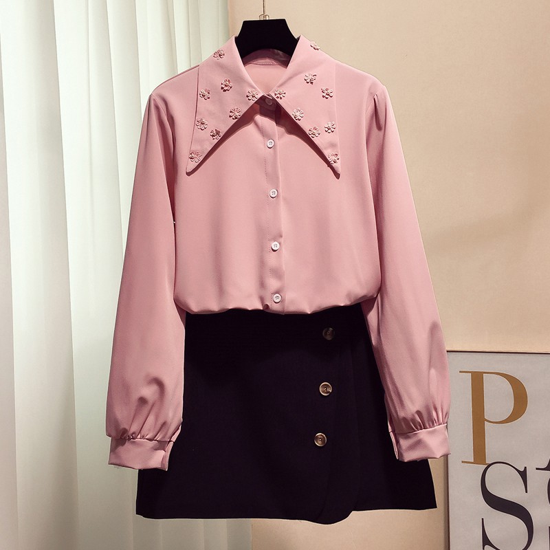 2019 Baru Pacar Desain Baju Atasan Wanita Fashion Lengan Panjang Gaya Korea Pakaian Merah Muda Hijau Putih Tombol Kemeja Blus 3xl 228 Blus Dan Kemeja Aliexpress