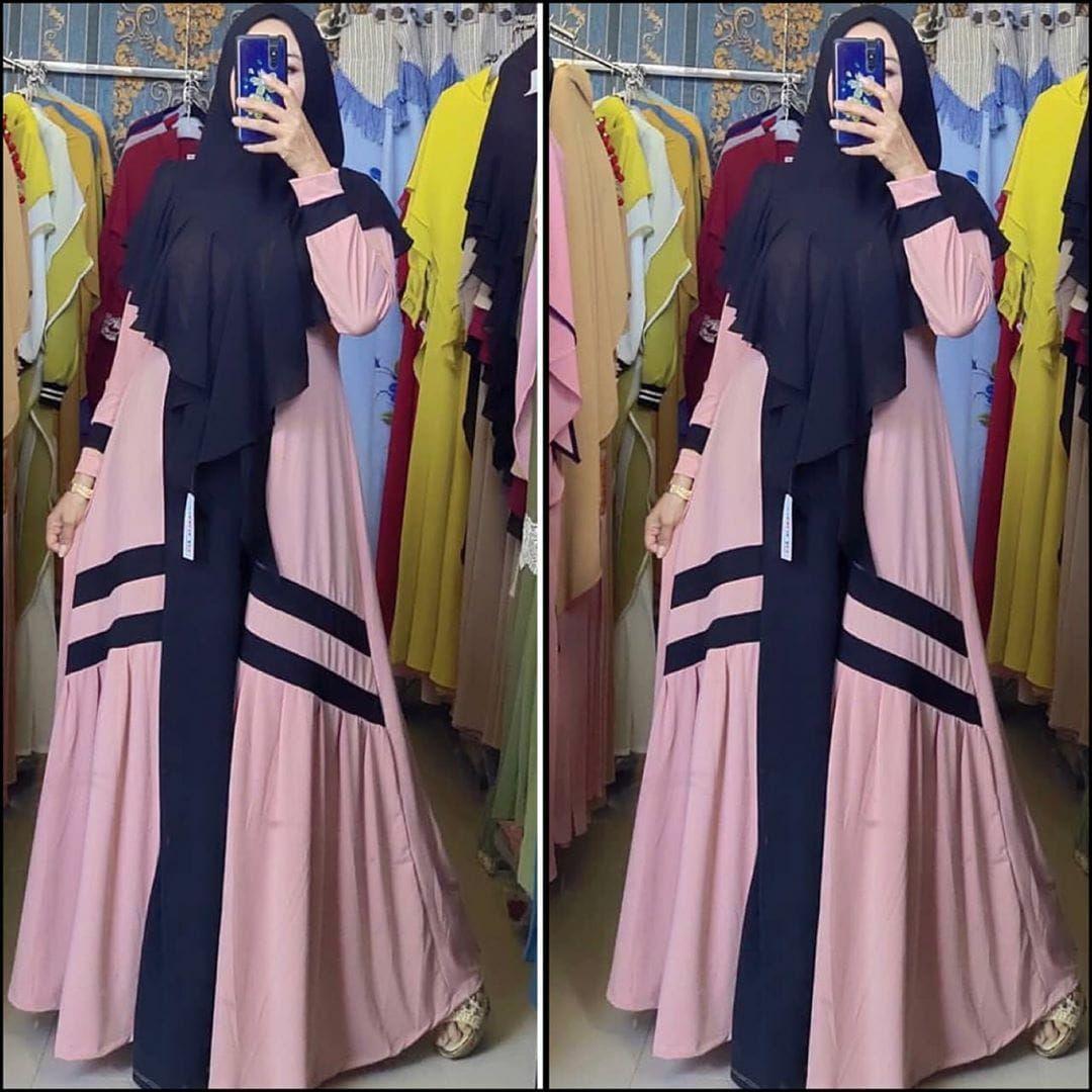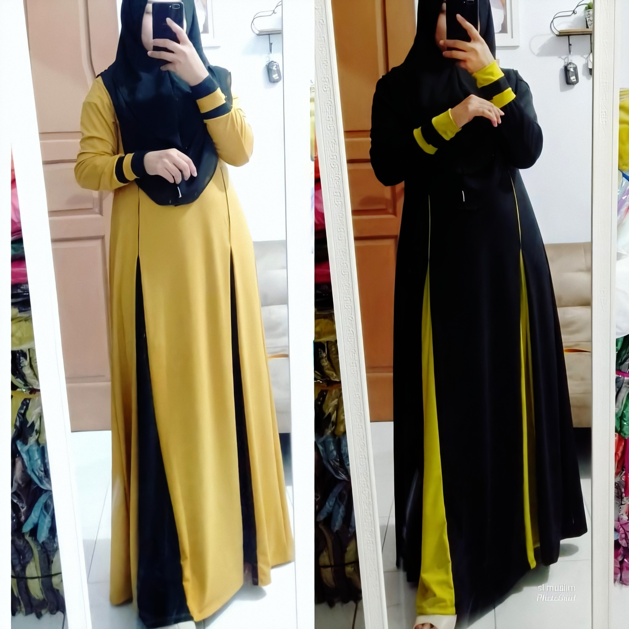 Baju Gamis Resleting Kombinasi Warna Renda Ulir Ulr4121 Supplier Baju Gamis Terbaru Bahan Sifon Spandek Bahan Jerse Moslem Fashion Fashion Dresses Model Dress