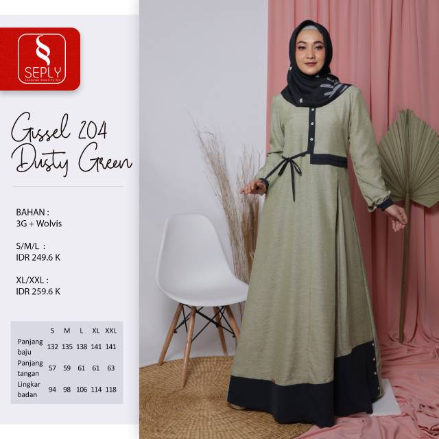 Sarimbit Seply Eksis 84 Dusty Green Gamis Gissel 161 Baju Muslim Sarimbit Keluarga Seply Shopee Indonesia