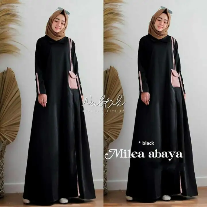 Last Stock Abaya Hitam Gamis Polos Fesyen Wanita Pakaian Wanita Gaun Rok Di Carousell