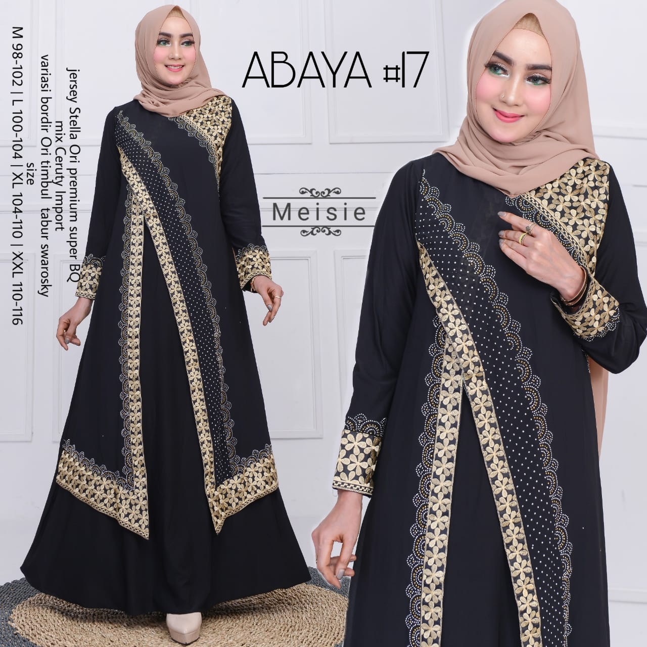 Harga Spesifikasi Abaya Arab Hitam Full Bordir Komputer Benang Warna Kuning Emas Gamis Abaya Turki Bordir Gamis Hitam Bordir Busana Muslim Pakaian Muslim