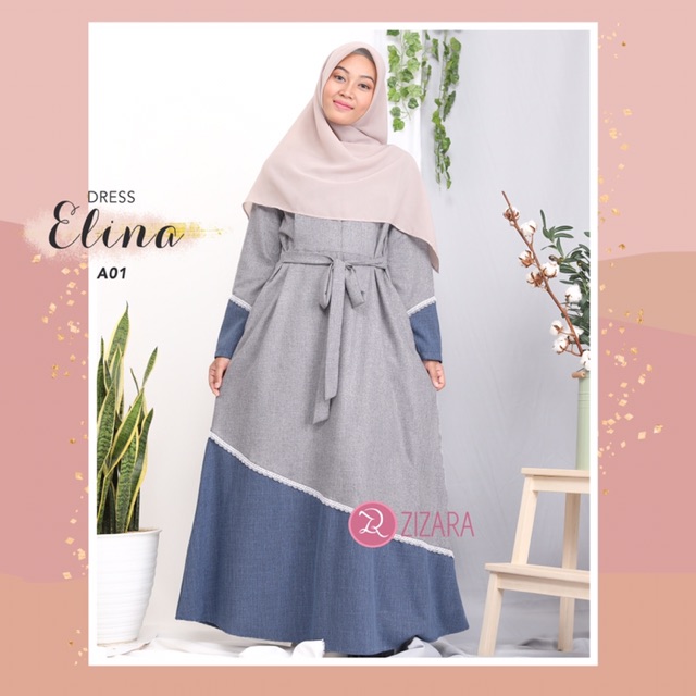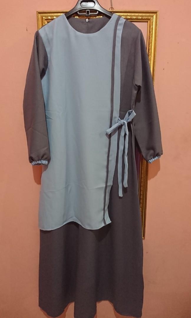 Gamis Wanita Warna Biru Kombinasi Abu Abu Grey Long Dress Olshop Fashion Olshop Wanita Di Carousell