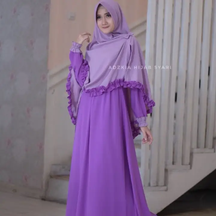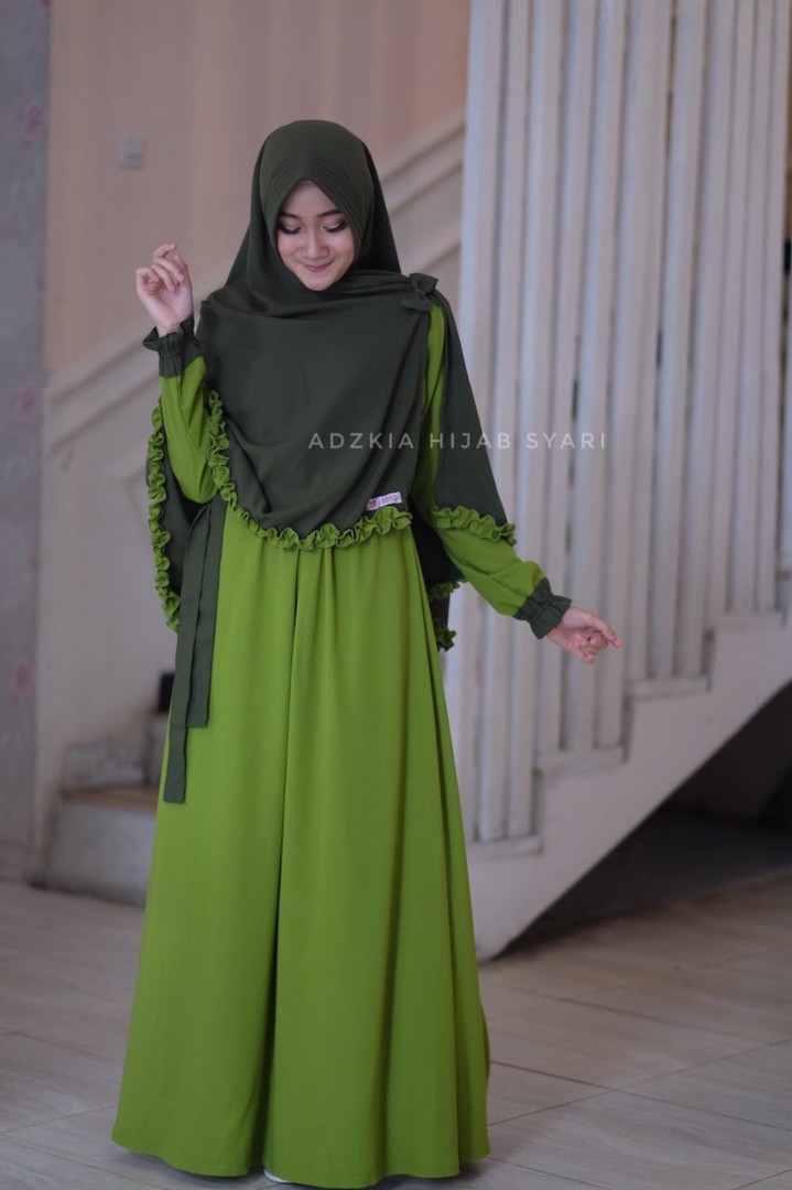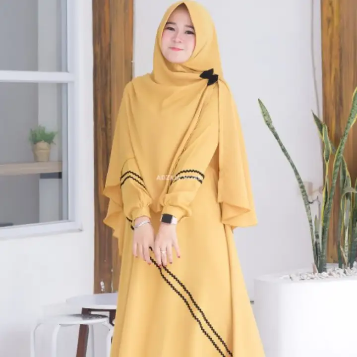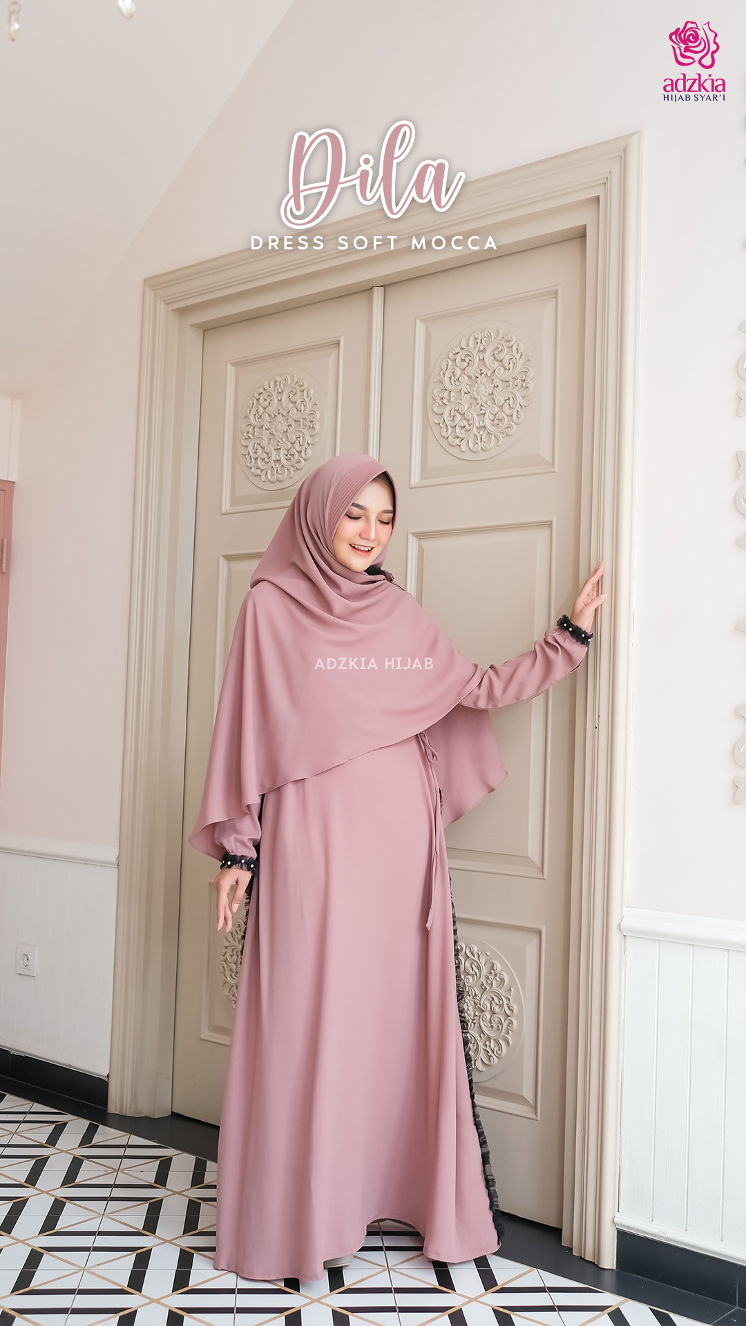 Gamis Syari Adzkia Manisqu Mocca 3 Jpg 853 853 Pola Selendang Gaya Busana Pola Pakaian