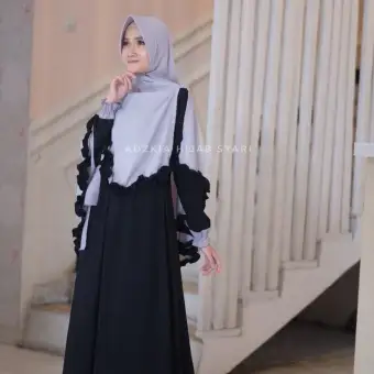 Gamis Syari Adzkia Justmine Elegan Adzkia Hijab Syari Gamis Justmine Hitam Dibuat Dari Bahan Sharon Dengan Teksture Tebel Lembut Adem Hijab Hitam Wanita