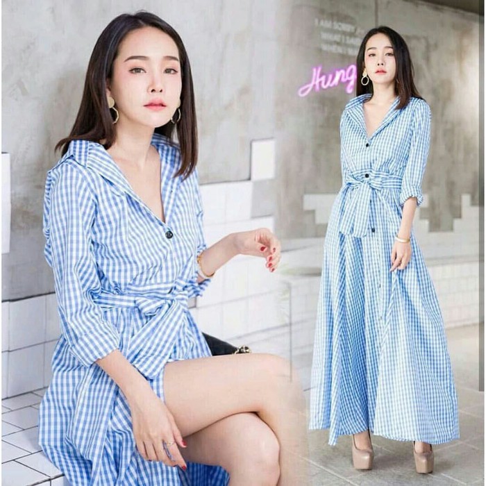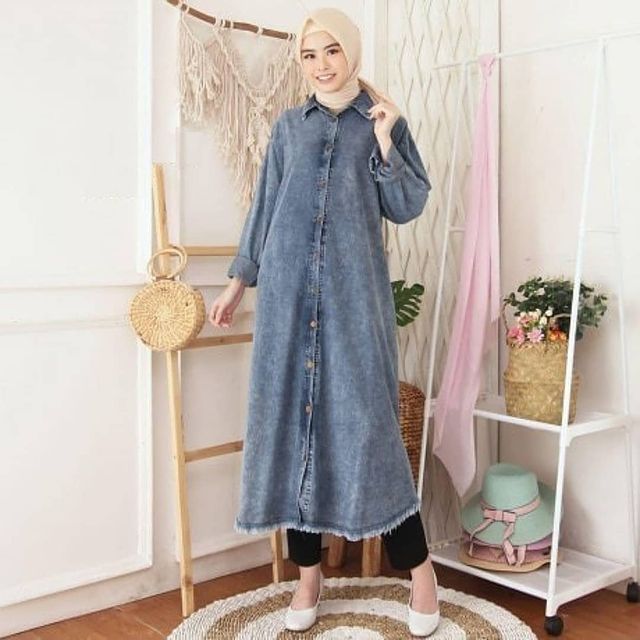 Model Baju Gamis Modern Remaja Kekinian Kerah Kancing Depan Ikat Pinggang Soft Blue Informasi Tips Dan Foto Aneka Mode Abaya Casual Hijab Outfit Jubah Wanita