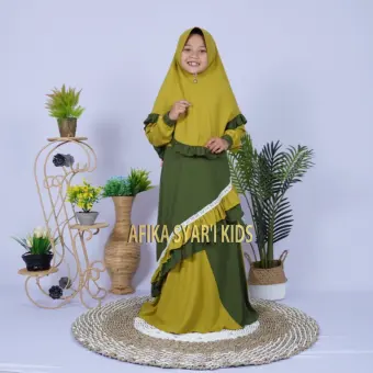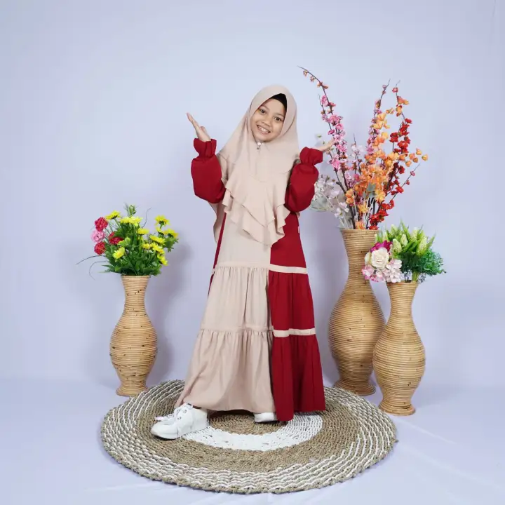 Albaye Syar I Baju Muslim Anak Gamis Anak Syari Nayla Syar I Warna Mocca Mix Maroon Bahan Wollycrepe Lazada Indonesia
