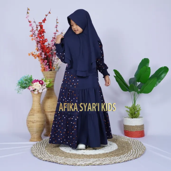 Gamis Muslim Anak Syari Syaqila 4 13 Tahun Warna Navy Baju Gamis Anak Syari Bahan Wollycrepe Lazada Indonesia