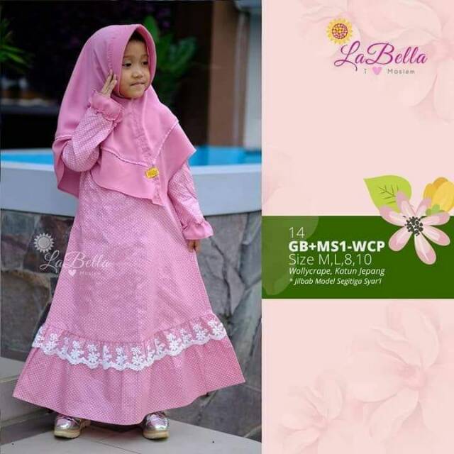 Hoscollection Labella Gamis Anak Kombinasi Ceruti Dan Renda Ms101 Cr Shopee Indonesia