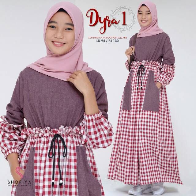 Kaira Dress By Rayna Include Pashmina Bahan Full Katun Motif Kotak Kotak Kombinasi Polos Tidak Transparan Kan Pakaian Wanita Model Pakaian Muslim Gaya Busana