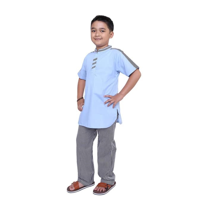 Rza Mw Gamis Jubah Koko Anak Seri Asyrun Lengan Pendek Warna Biru Donker Motif Garis Atasan Anak Laki Laki Zilingo Shopping Indonesia