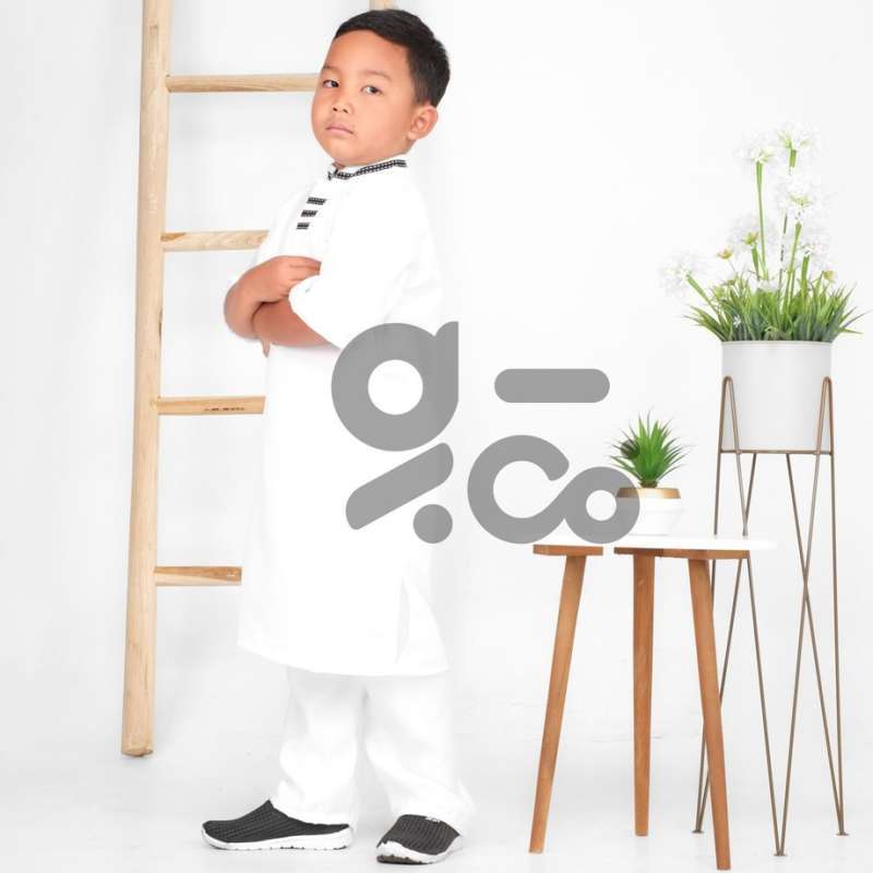 Rza Mw Promo Gamis Jubah Anak Seri Khomsa Lengan Pendek Warna Putih Polos Kerah Hitam Baju Koko Bayi Dan Balita Model Turki Polos Ganteng Syari Syari Tidak Isbal Pakistan Arab