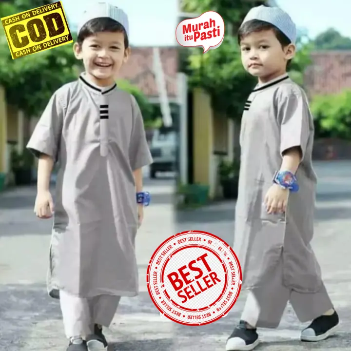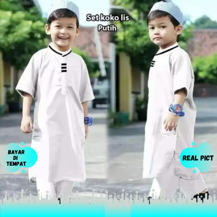 Promo Baju Koko Anak Laki Laki Model Pakistan Lis Warna Putih Terbaru 2021 Murah Bonus Peci