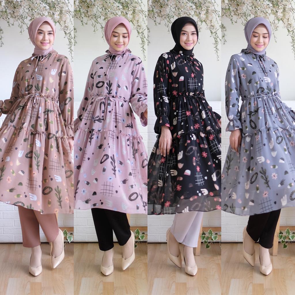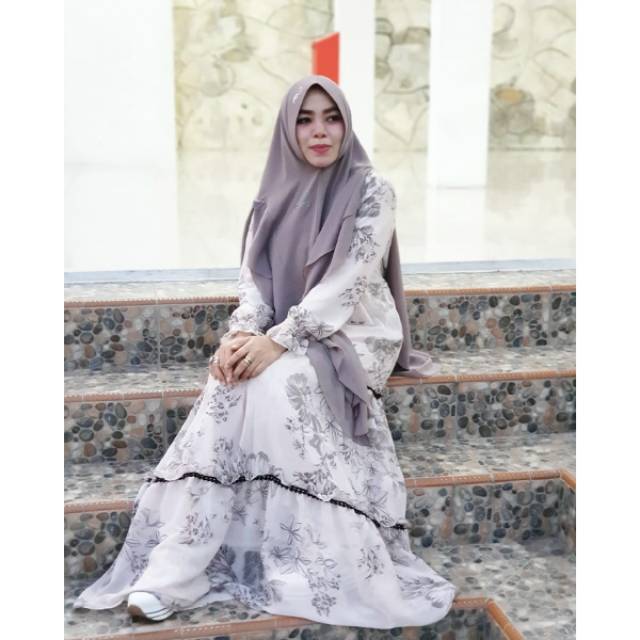 Gamis Syar I Atikah Motif Bunga Model Busana Muslim Monalisa Wolfish Bajugamisku Com