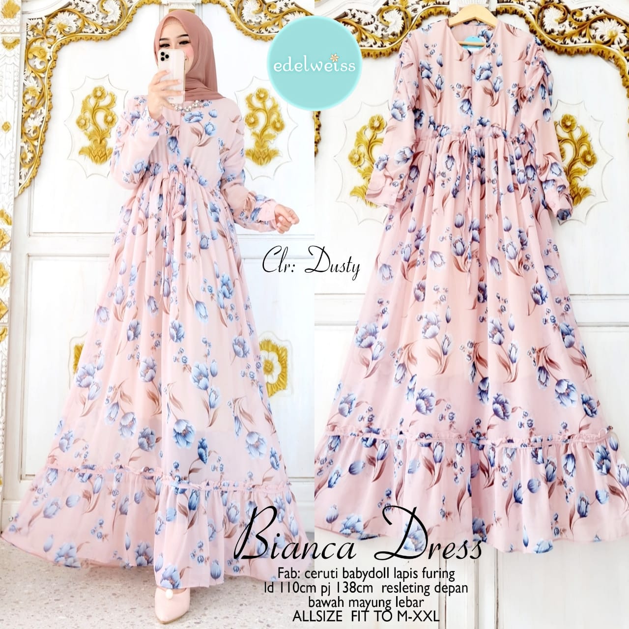 Jual Gamis Couple Monalisa Khimar Ceruti Motif Bunga Kota Cilegon Gamismuslimmurah Tokopedia