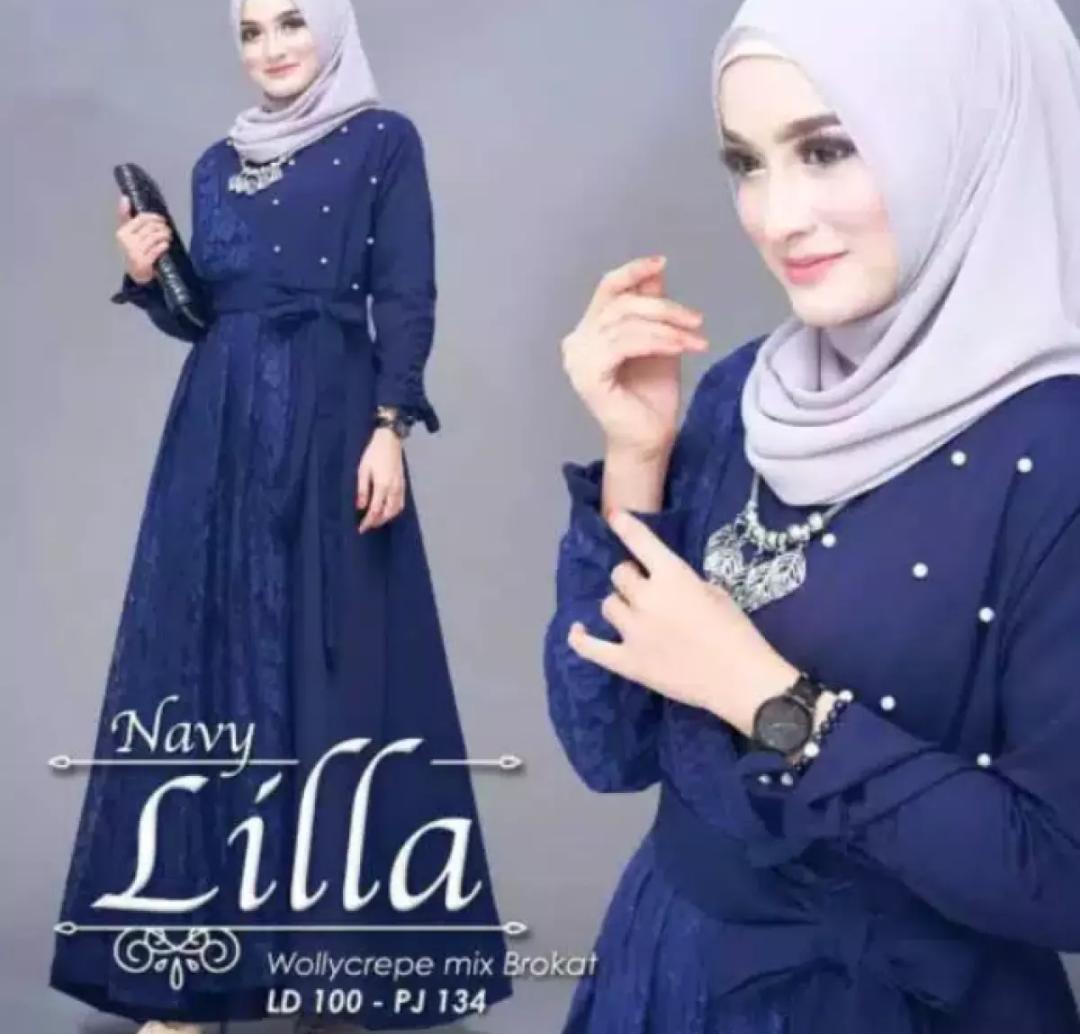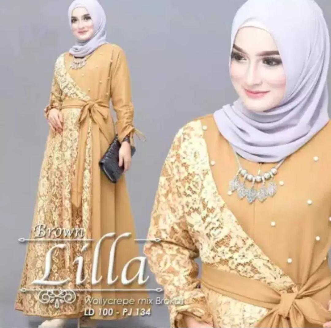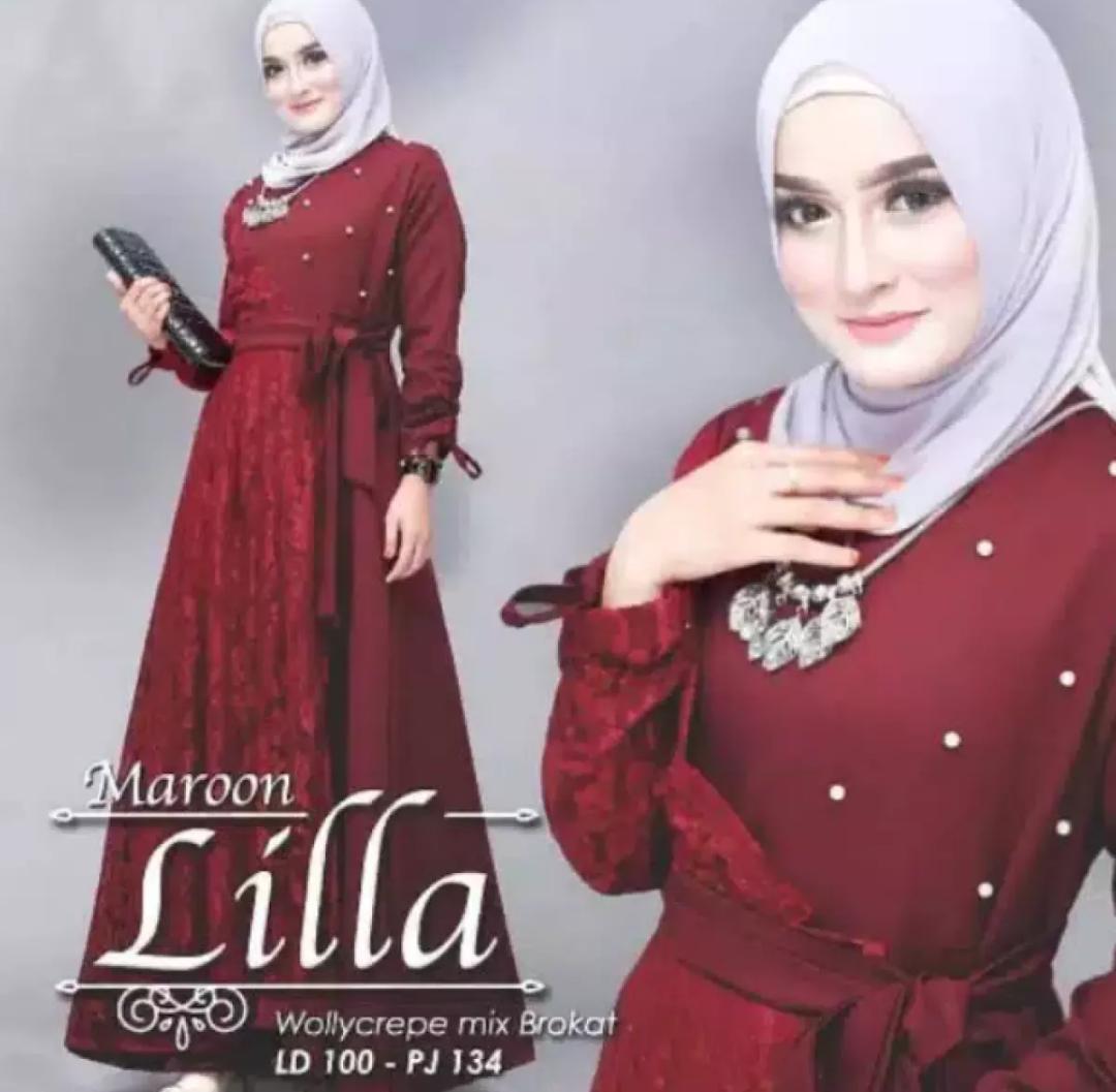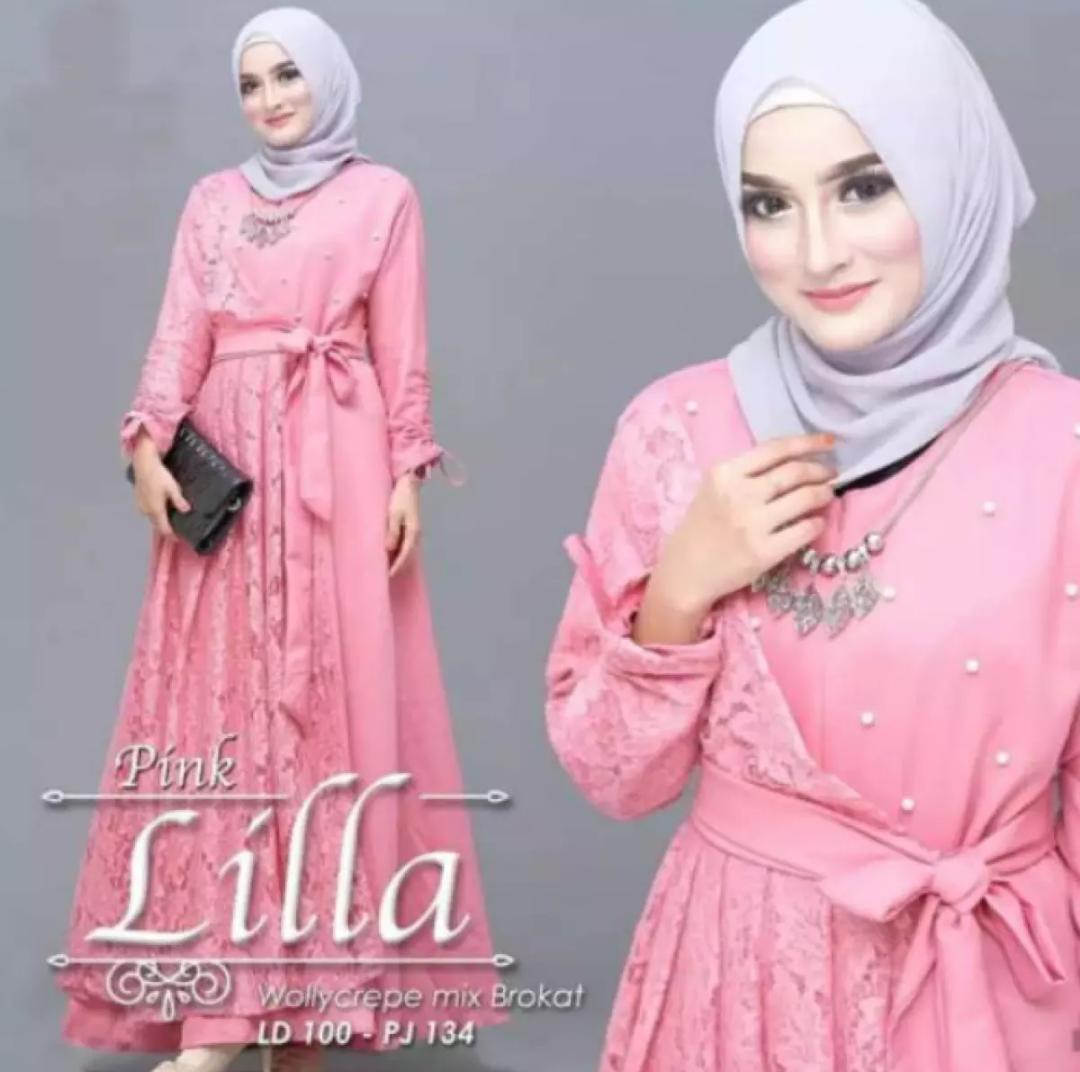 Lila Maxy Gamis Wanita Gamis Muslim Bahan Moscrepe Kombinasi Brukat Plus Mutiara Lazada Indonesia