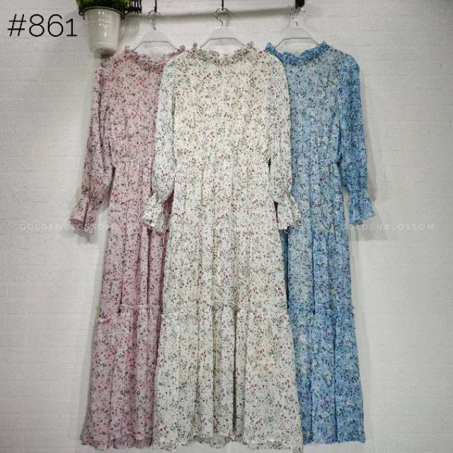 Model Baju Gamis Bahan Sifon Motif Bunga Model Pakaian Muslim Gaun Lengan Panjang Gaya Hijab